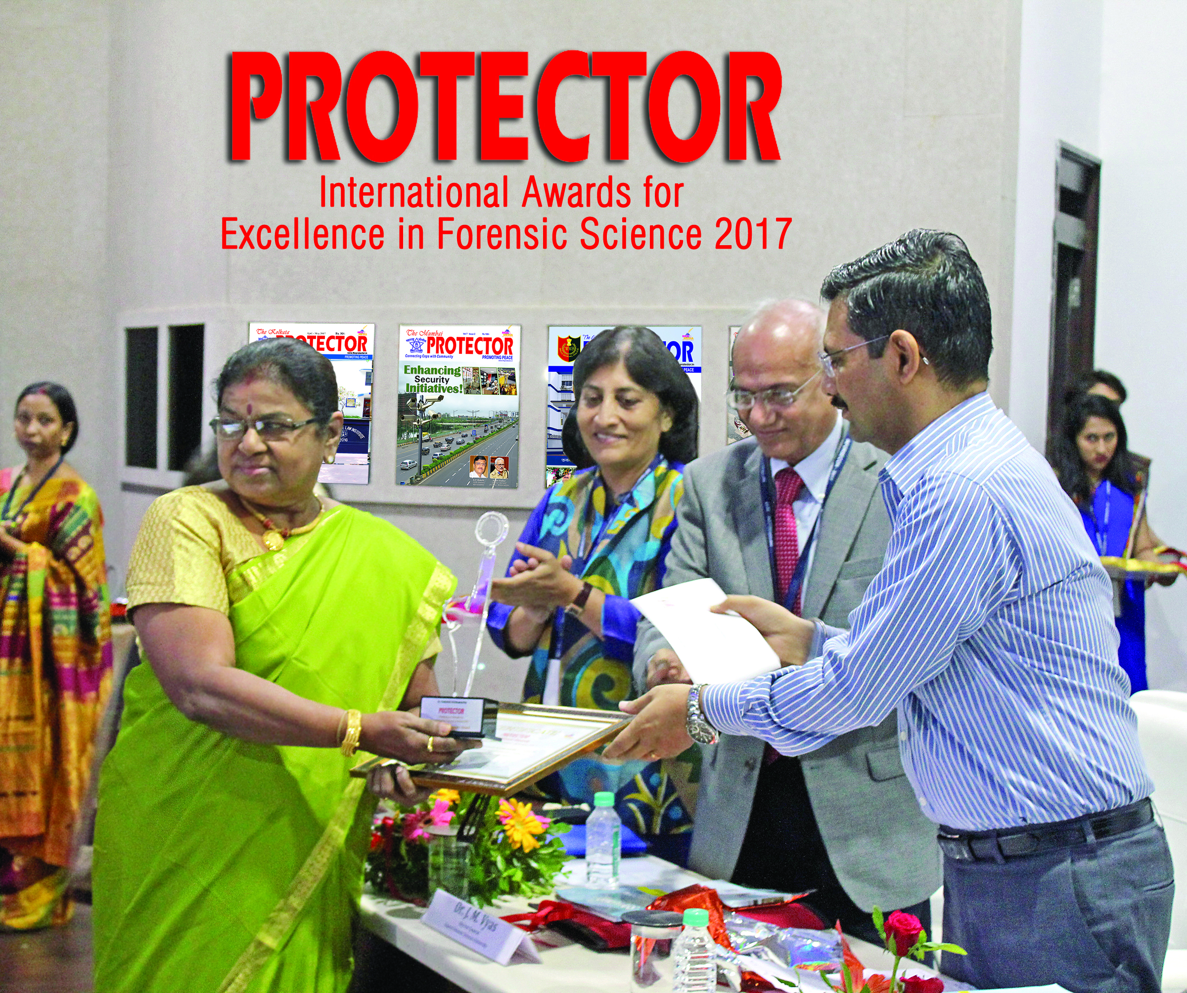 Dr. Rukmani Krishnamurthy Received “ LIFE TIME ACHIVEMENT AWARD” for valuable contribution in the field of forensic science, organized by GFSU and New Media in 1st Protector International Awards for Excellence in Forensic Science & Cyber Security 2017.